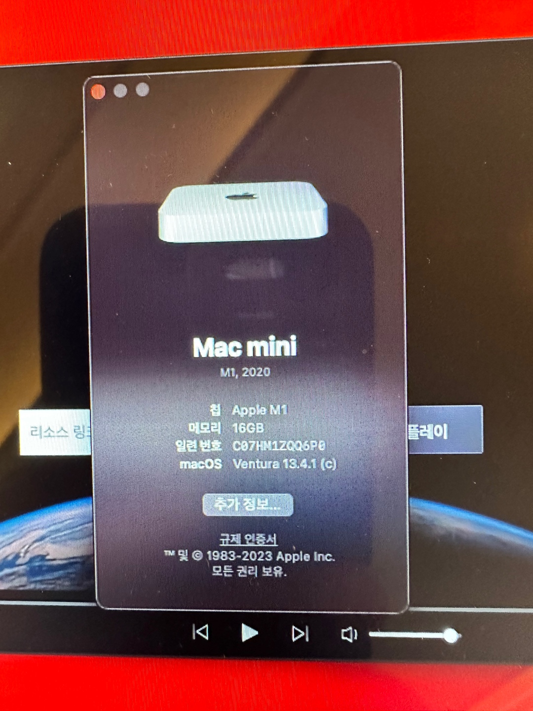 맥미니 2020m1 16기가 1테라 입니다 총사용시간 20시간정도입니다